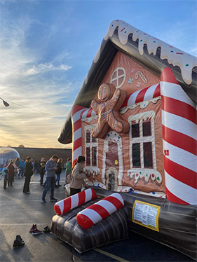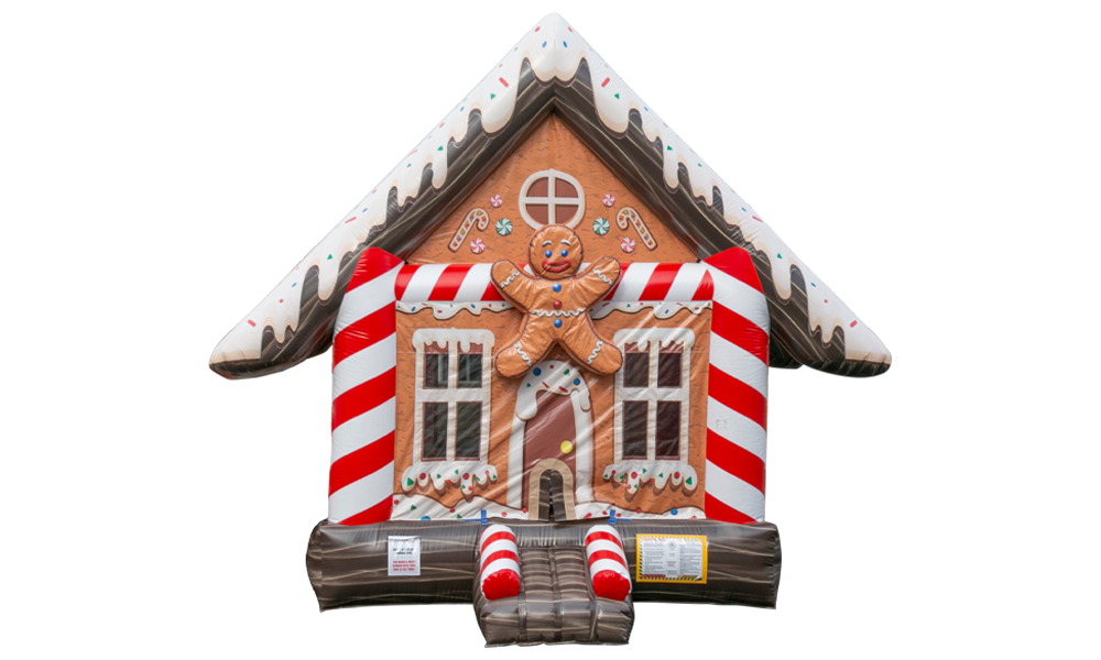 Bring the magic of the season to your celebration with our whimsical Gingerbread Bounce House! Perfect for winter wonderlands, holiday parties, and candy-themed events, this festive inflatable is designed to look just like a giant gingerbread house complete with candy-cane pillars, gumdrop accents, and frosted details.