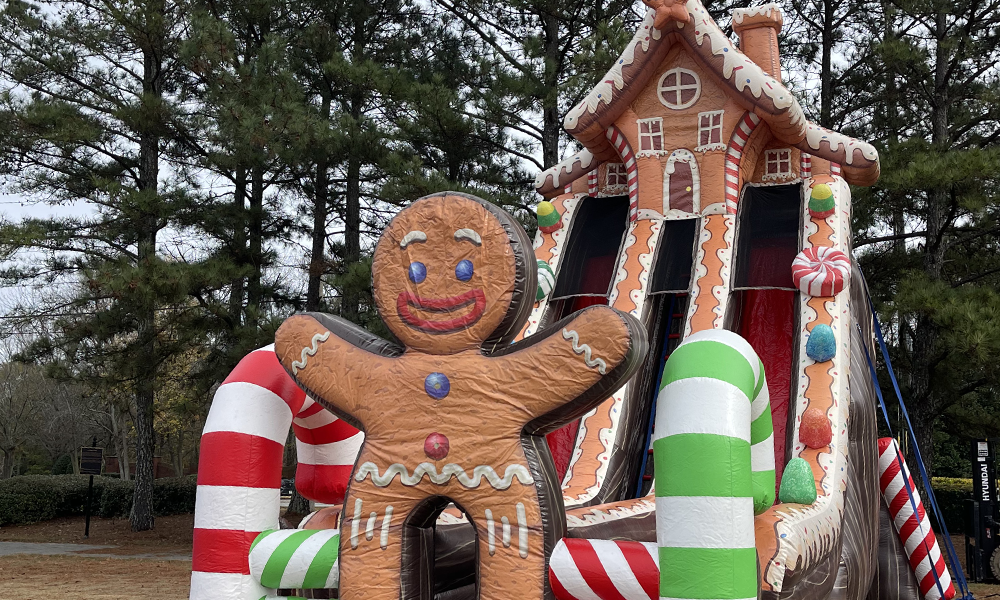 Add a sweet thrill to your holiday celebration with our Gingerbread House Slide! This festive inflatable features the charming look of a giant gingerbread cottage, decorated with candy-cane stripes, gumdrop details, and frosted rooftop accents. Kids will climb up and zip down the slide for endless fun, making it a perfect centerpiece for winter festivals, holiday parties, or candyland-themed events.