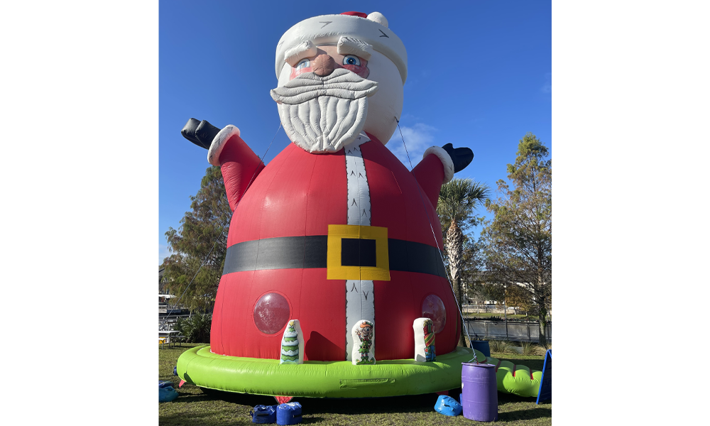 Ho, ho, ho, here comes Santa Claus. He won’t fit down your chimney but he’s bearing the gift of WOW factor at your next event! Standing an impressive 30ft tall, this large scale Christmas bounce offers high throughput and tremendous visual appeal. Over 20 kids at a time can bounce and play inside the unit, and it will be a Merry Christmas when you experience its potential revenue generation. Santa is busy during Christmas season so inquire early. For added impact place Giant Santa along side Bouncy, the World’s Tallest Snowman…and the chillll-dren will have an ice!